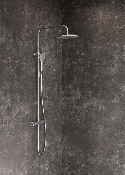 A zuhanyoszlopot a zuhanykabin falára szerelik. A magasságát a rögzítő anya segítségével lehet beállítani - egyszerűen kézzel, bármikor a telepítés után. A kapcsolóval választhat a zuhanyfej vagy a kézi zuhany vízsugara közül. A zuhanyfej Rain funkcióval rendelkezik, amikor a víz kellemesen folyik az összes fúvókából. A Select kézi zuhany három vízsugár intenzitás funkcióval rendelkezik. A klasszikus Rain mód nyári esőt idéz és nyugtató hatással van a bőrre. A SoftRain funkcióval, amikor levegőt szív be, különösen lágy esőt élvezhet, amikor minden csepp örömforrás. A Drop funkció beállításakor a víz nagyon finoman folyik, és különösen a szappanozás és a hajmosás során használhatja.