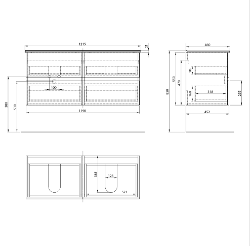 Aqualine Paneda dupla mosdós mosdótartó szekrény, mosdó nélkül, 119 x 55 x 45,2 cm, Emporio tölgy