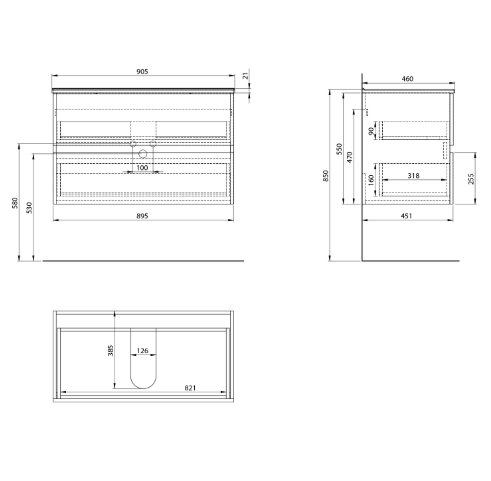 Aqualine Paneda Strip mosdótartó szekrény, mosdó nélkül, 89,5 x 55 x 45,2 cm, Emporio tölgy