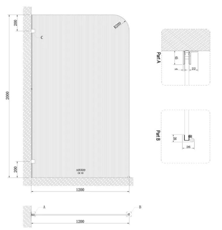 A zuhanyfal nem megfordítható, ezért a beépítés előtt különösen fontos ellenőrizni a beépítési irányt és a rendelkezésre álló helyet.