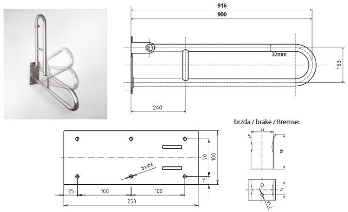 BEMETA HELP Felhajtható kapaszkodó, U-típus, 900mm, fehér (301102904)