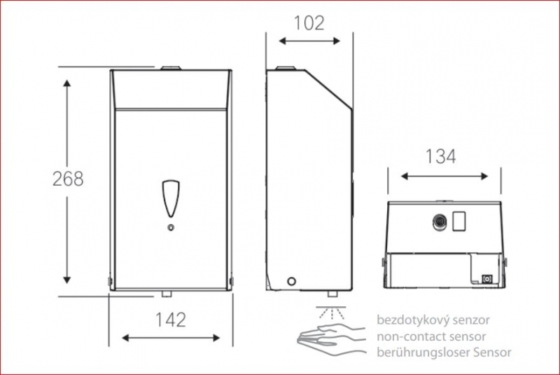 BEMETA HOTEL Automata szappan és fertőtlenítőszer adagoló, 142x268x102mm, 1100ml, inox
