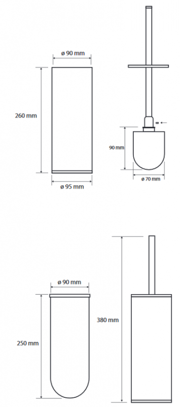 BEMETA OMEGA álló WC kefetartó, fekete kefe, 95x380x105mm
