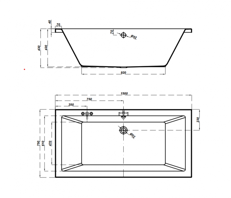 Ez a kialakítás kényelmes fürdőzést tesz lehetővé mindkét oldalról, és ideális két személy számára is.