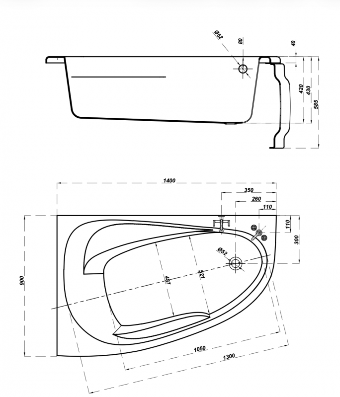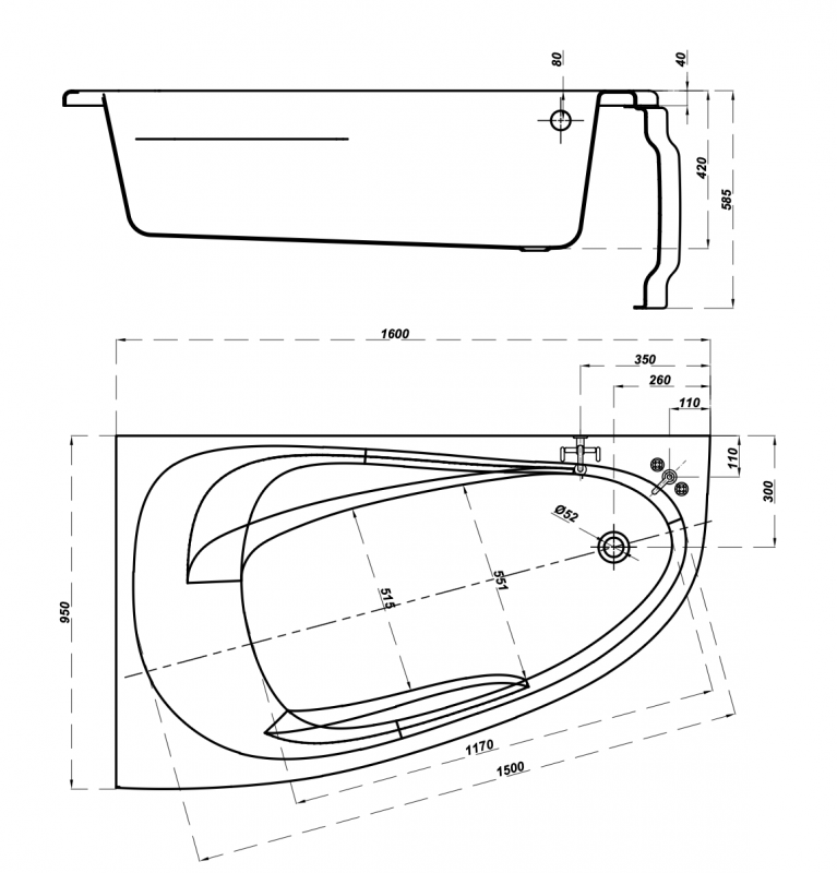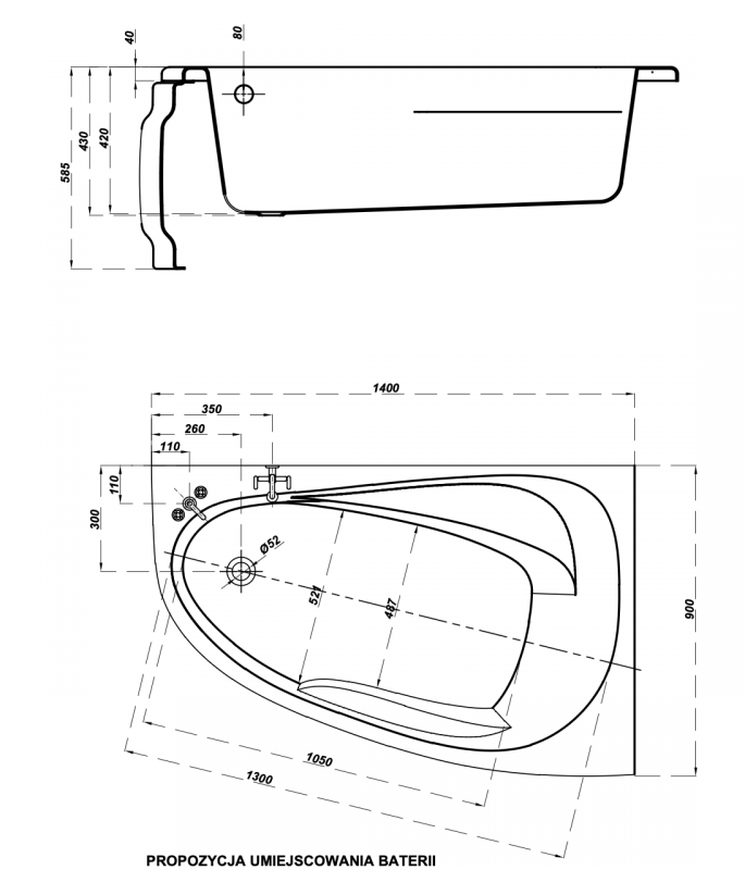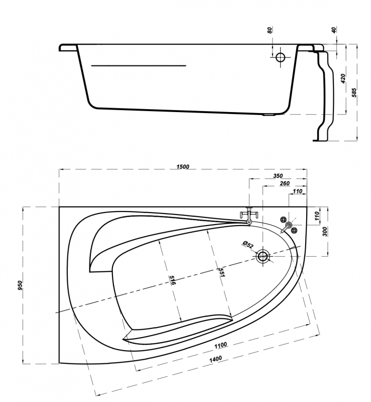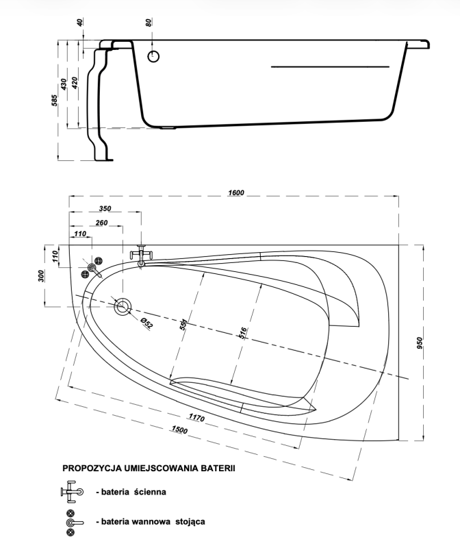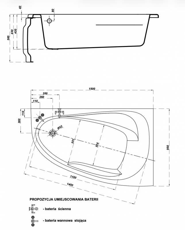 A kád kényelmes kartámasszal, ergonomikus háttámlával és széles peremmel rendelkezik, amely praktikus tárolófelületet biztosít. Tágas, ovális fürdőrésze különösen komfortossá teszi a használatot. A gyárilag mellékelt állítható lábak megkönnyítik a beépítést és a szintezést.