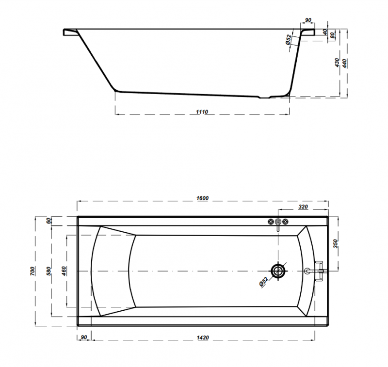 A kád 4 mm vastag, prémium minőségű akrilból készül, amely tartós és higiénikus felületet biztosít.