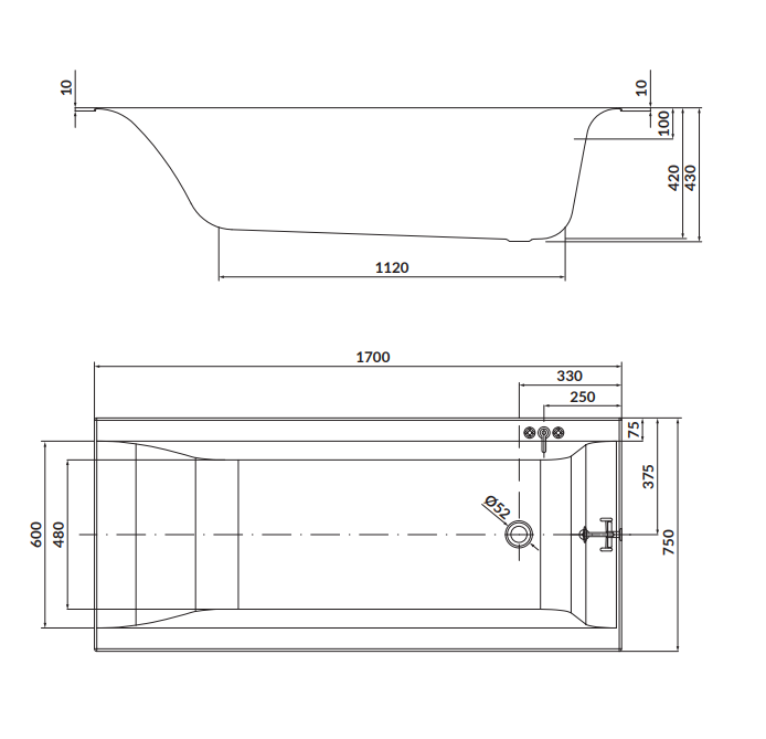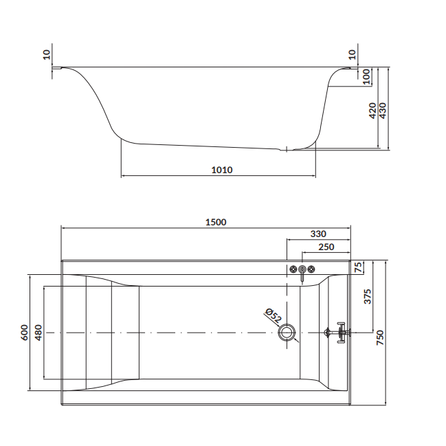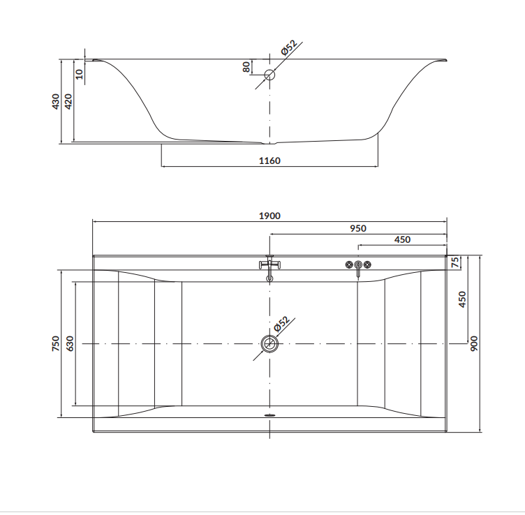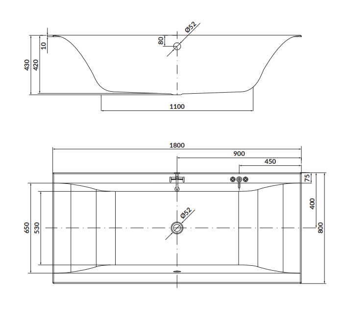 A 180×80-as méret ergonomikus háttámlával, tágas belső térrel és a hosszú oldalon elhelyezett lefolyóval rendelkezik, ami kényelmes fürdőzést biztosít.