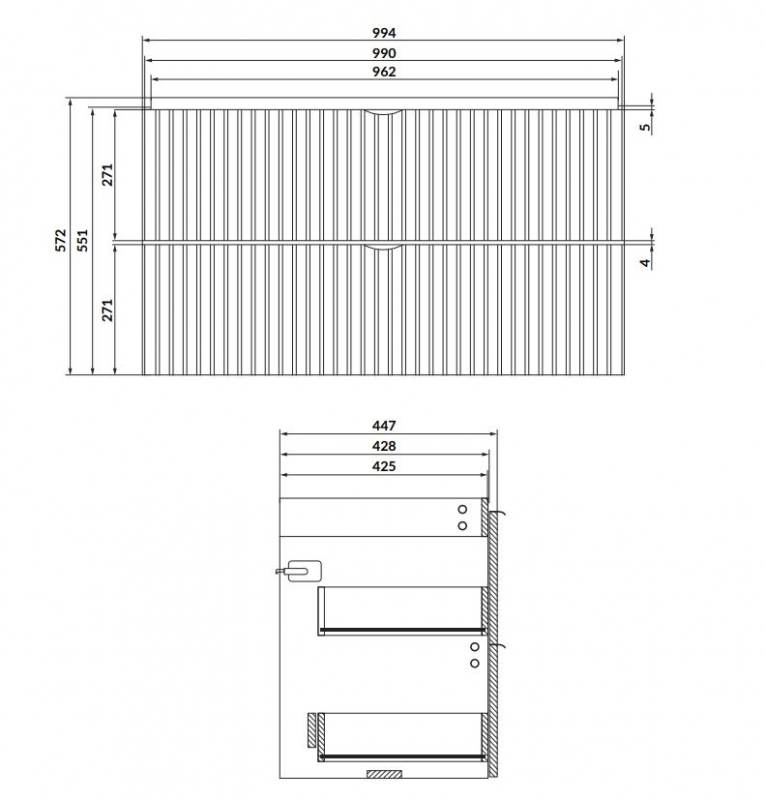 Ez a szekrény két tágas, teljes fenéklapú fiókkal van felszerelve, amelyek bőséges helyet biztosítanak a különféle fürdőszobai kiegészítők tárolására. A hatékony helykihasználás érdekében helytakarékos szifon használatát ajánljuk.