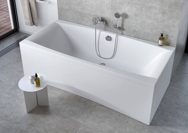Az akril fürdőkád 180x80 ideális közepes és nagyobb méretű fürdőszobákba, ahol fontos a kényelem és a tágas belső tér.