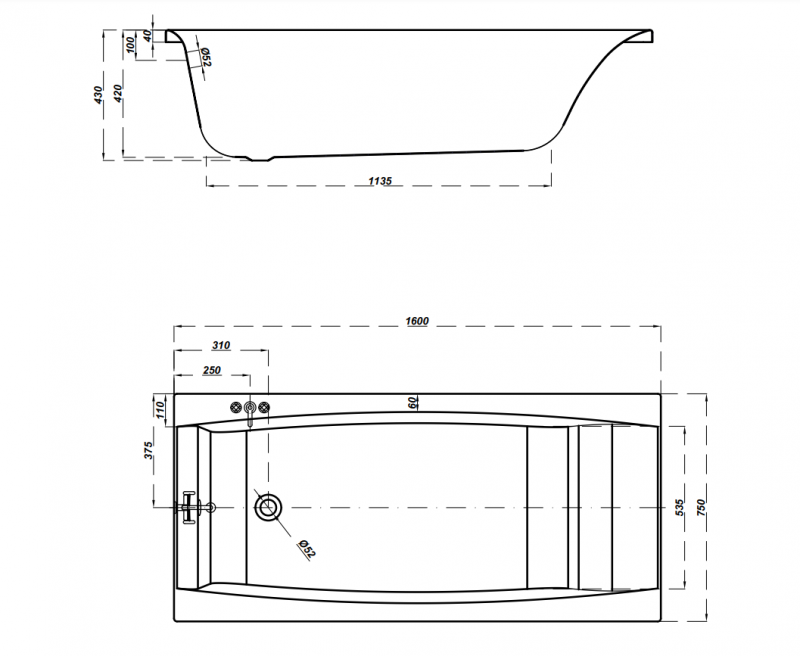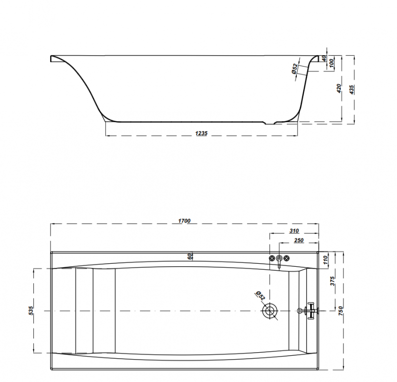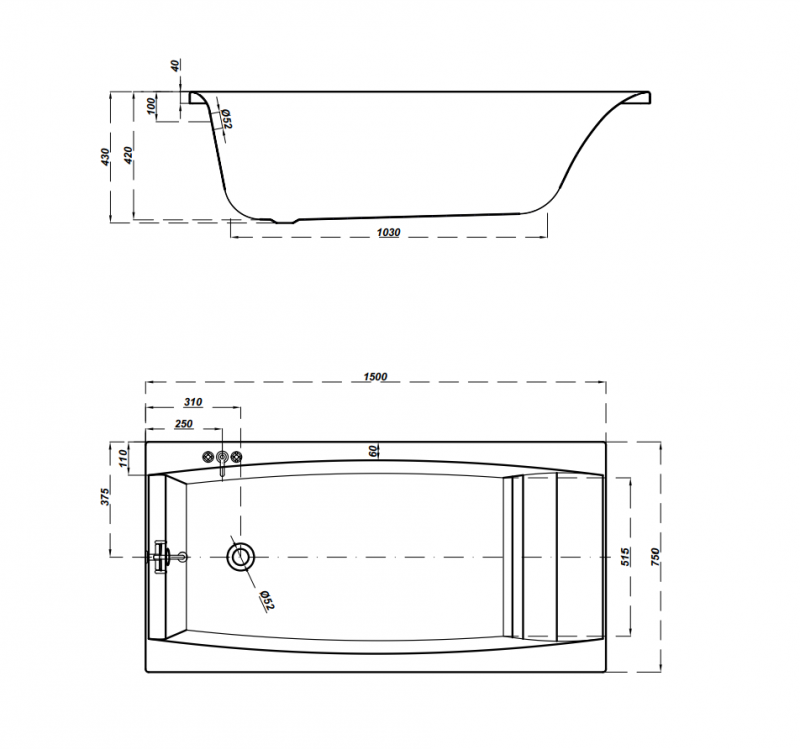 A 4 mm-es akril felület kellemes tapintású, meleg érzetű és jól tartja a víz hőmérsékletét. A sima, porózusmentes felület higiénikus, könnyen tisztítható, és hosszú távon is megőrzi fehér fényét. A kád gyanta- és üvegszál-erősítésű aljzata stabil szerkezetet biztosít.
