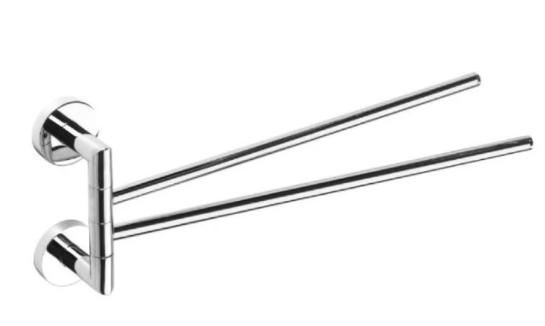 A krómozott dupla törölközőtartó bármelyik fürdőszoba megjelenését feldobja. Forgathatóságának köszönhetően nemcsak szép látvány, de nagyon praktikus is.