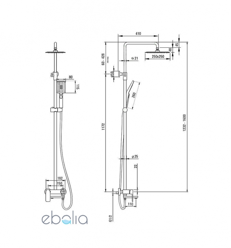Az esőzuhany a felhasználó magasságának megfelelően állítható magasságú zuhanyfejjel rendelkezik. Ez a tartomány lehetővé teszi az esőzuhany magasságának optimális beállítását a háztartás minden tagja számára.