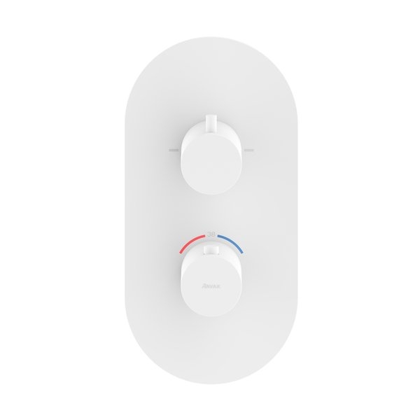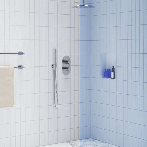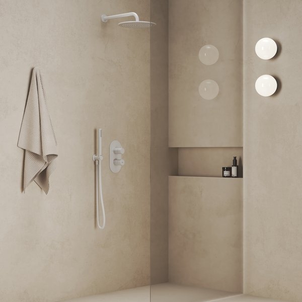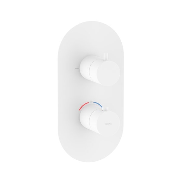A termosztatikus beépített csaptelep az R-box szerelőtest használatára készült, amely jelentősen megkönnyíti a munkát és javítja a teljes munka eredményét. A fürdőszoba egységes megoldásának és designjának érdekében javasoljuk, hogy kombinálja az Espirit csaptelepekkel azonos színben.