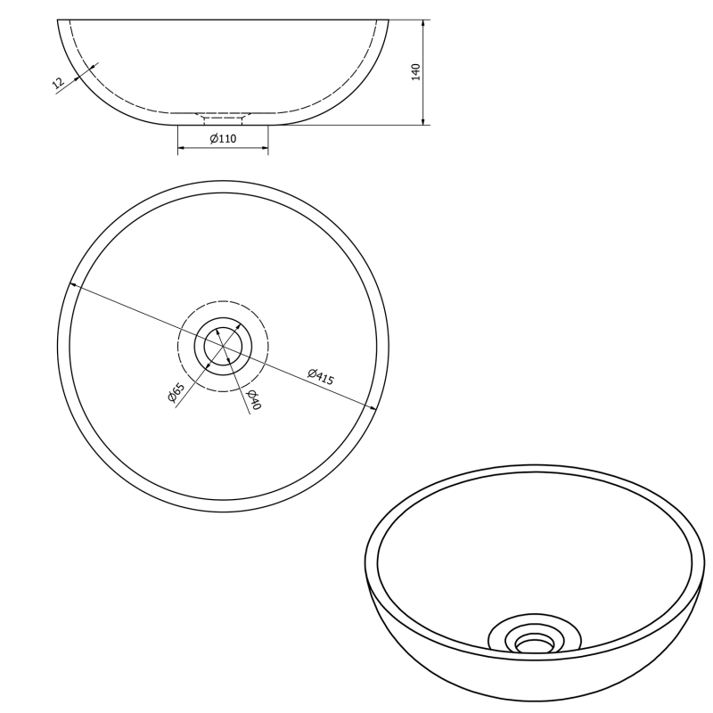Invena KETO mosdókagyló, kerek, asztali, átmérő 42 cm, fehér