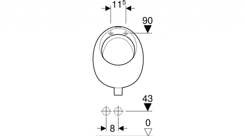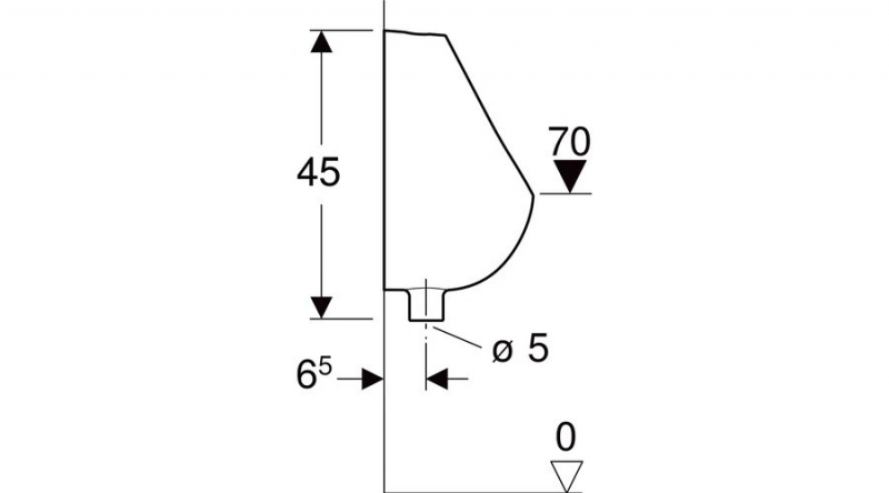 Falon kívüli piszoáröblítővel szerelhető, szaniterkerámia anyagból készült, falra szerelhető kivitel, felső bekötésű és alsó kifolyású.