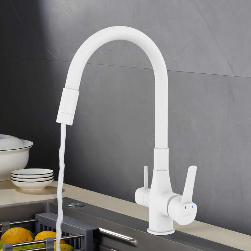 Invena GLAMOUR konyhai csaptelep, álló, flexi kifolyó, pult alá szerelhető vízszűrővel, fehér