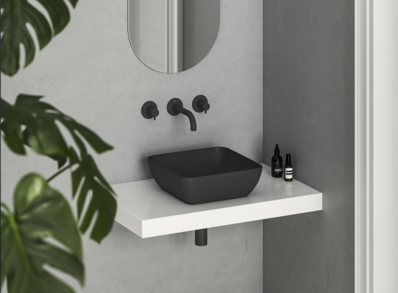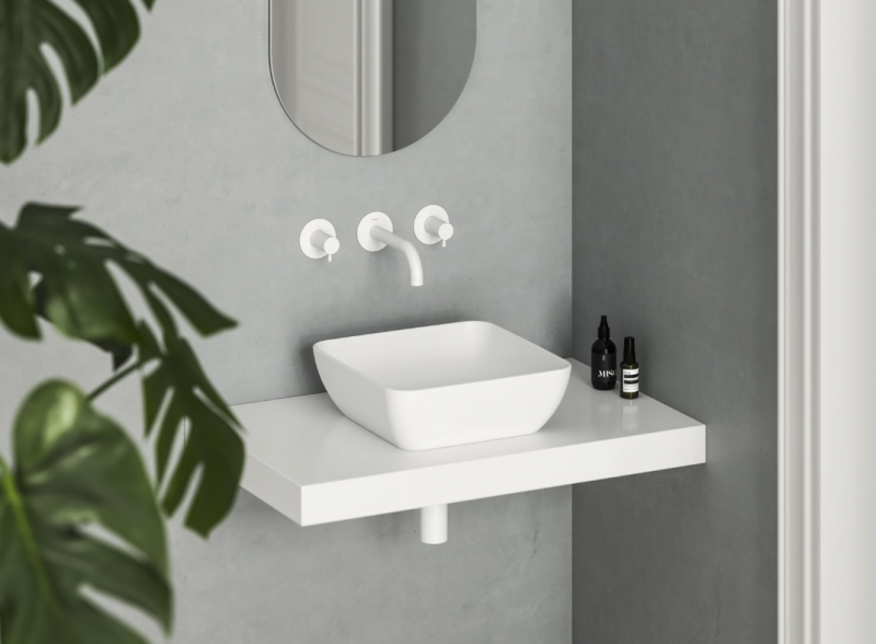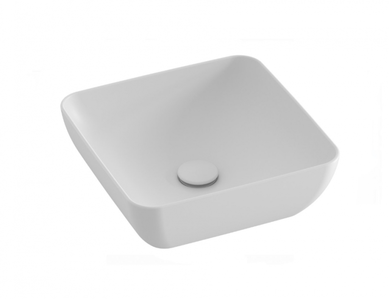 Vékonyfalú kerámia mosdó Uni Slim, asztalra vagy szekrényre szerelhető, túlfolyó nélkül. Fehér kivitelben.