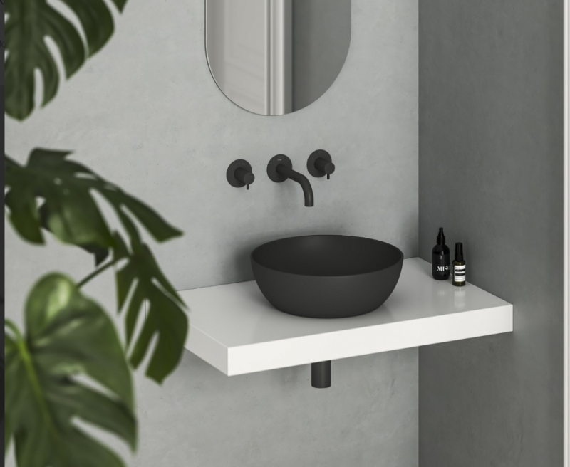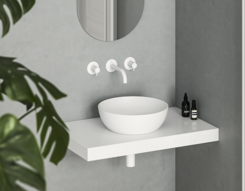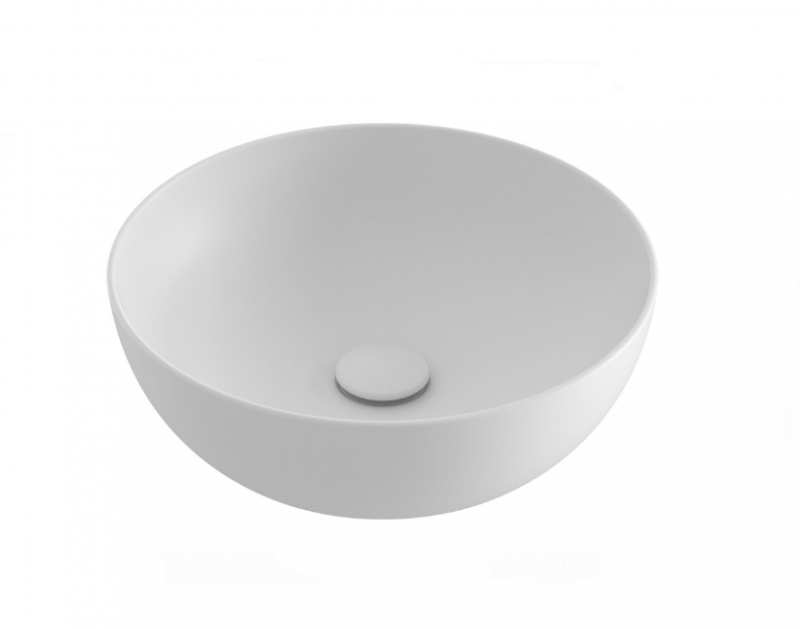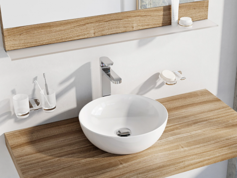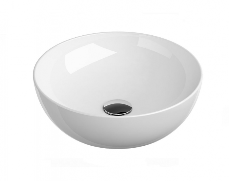 Kerámia Uni Slim mosdó, mely asztalra vagy szekrényre szerelhető, túlfolyó nélkül. Fehér színben.