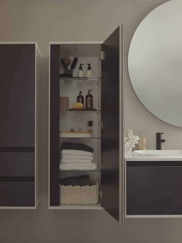 Az ajtó nyomással nyitható, fogantyú nélkül, a modern és elegáns megjelenésért.