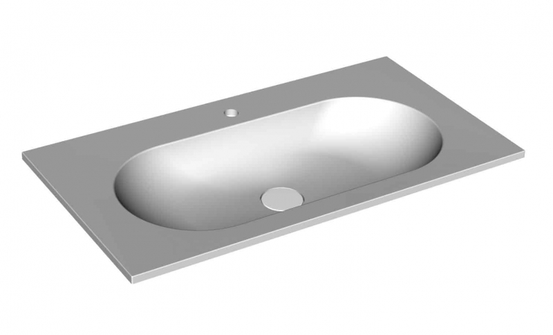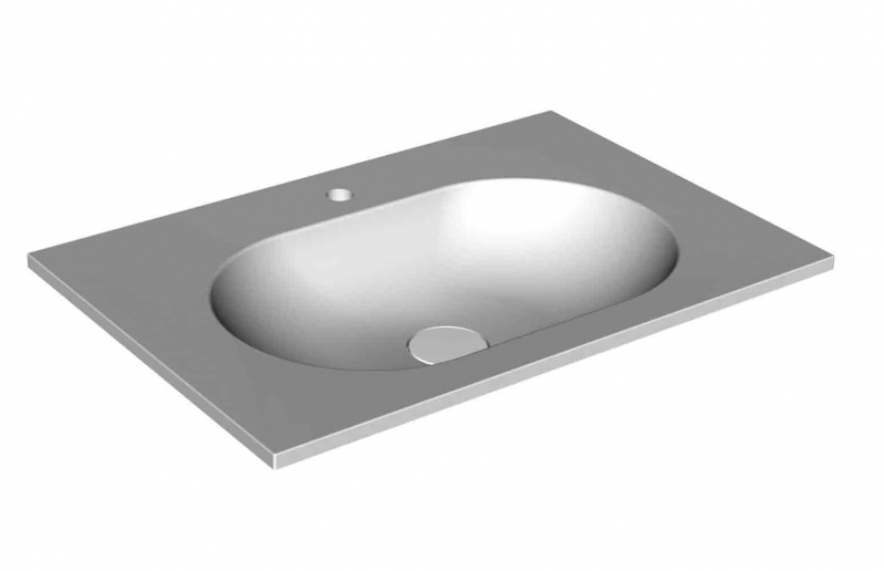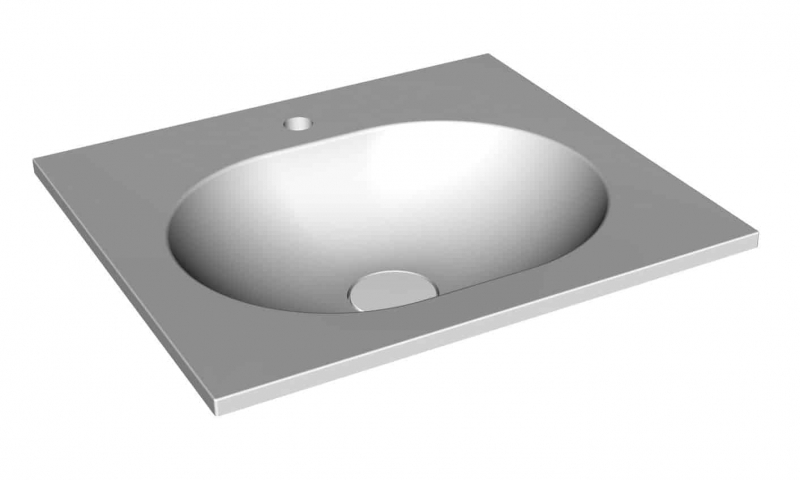 Öntött márvány mosdó szintbe süllyeszett medencével, anyagfolytonos kialakításban.
