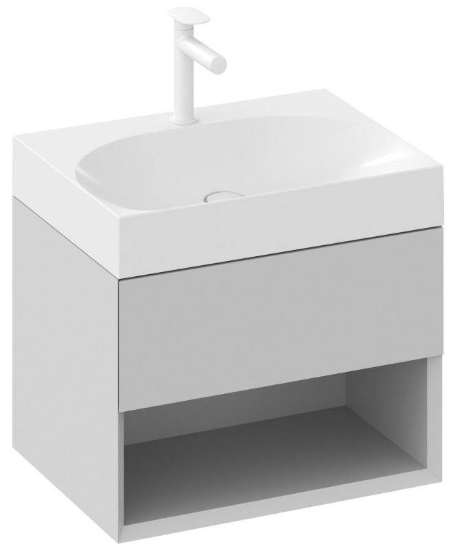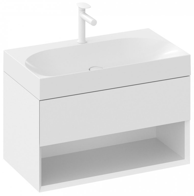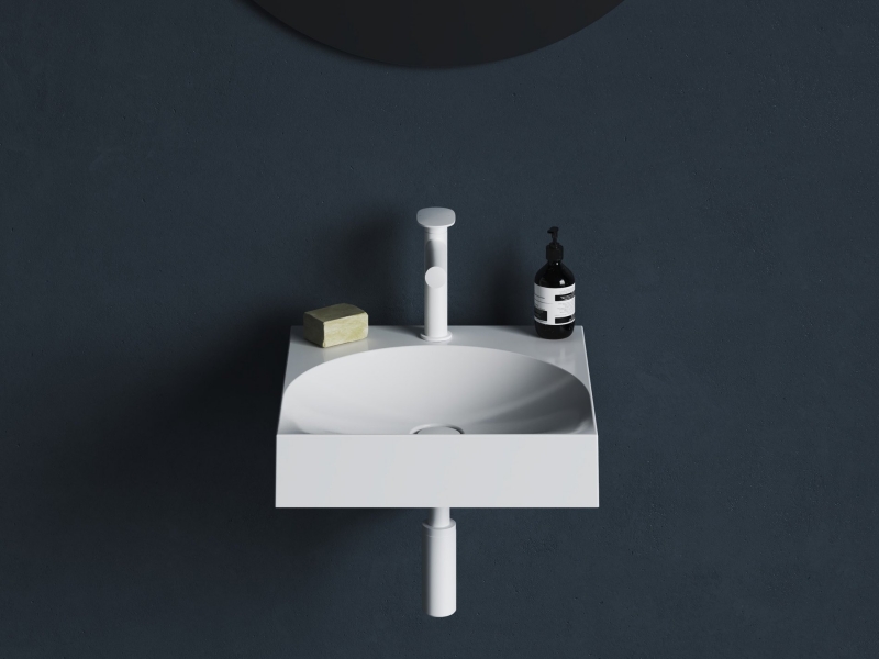 Öntött márvány Lite mosdó falra szerelhető, túlfolyó nélkül. Fehér kivitelben. Mosdócsaptelep furattal.