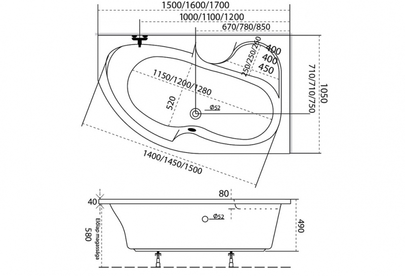Azalia kád technikai rajz