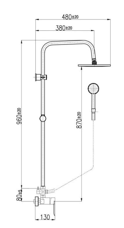 A NIL zuhanycsaptelep fejzuhannyal és kézizuhannyal a következőkből áll:
