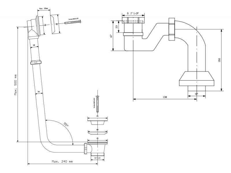 POLYSAN CHARLESTON kád le- és túlfolyó, dugóval, lánccal, arany (71799)