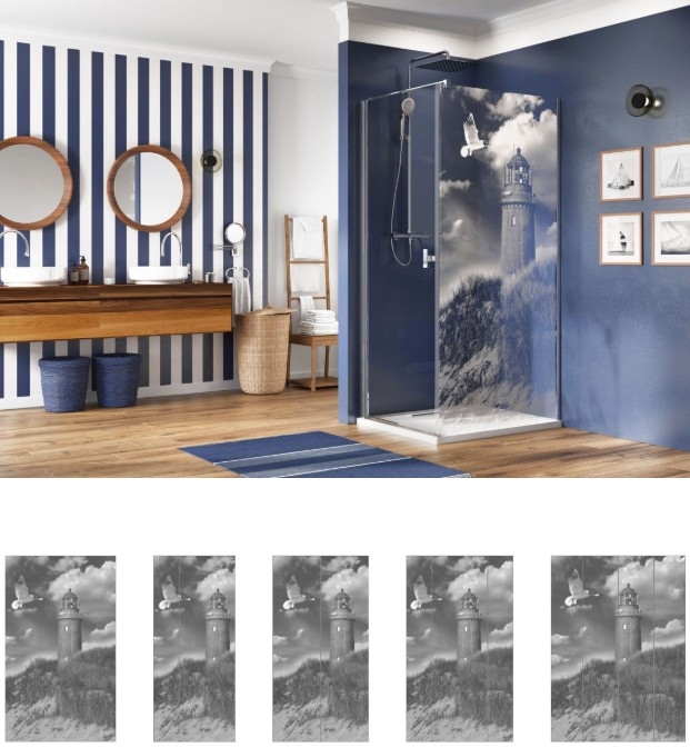 A gravírozott minta mindig a zuhanykabin külső oldalára kerül, hogy az üveg ne veszítsen a kezelt biztonsági üveg tulajdonságaiból és könnyen tisztán tartható maradjon – a védőbevonat mindig a zuhanykabin belső oldalán van. A lézergravírozás elérhető átlátszó, UltraClear®, Mirror, barna és grafit üvegeken.