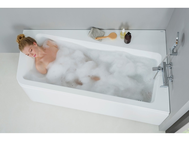 - Az aszimmetrikus 10° fürdőkád a sarokba illik és kissé ferde. A tervező, Kryštof Nosál, egy téglalap alakú kádat vett és 10 fokkal elforgatta. Az új szög nem csak esztétikus, hanem praktikus is - több tárolóhelyet biztosít.