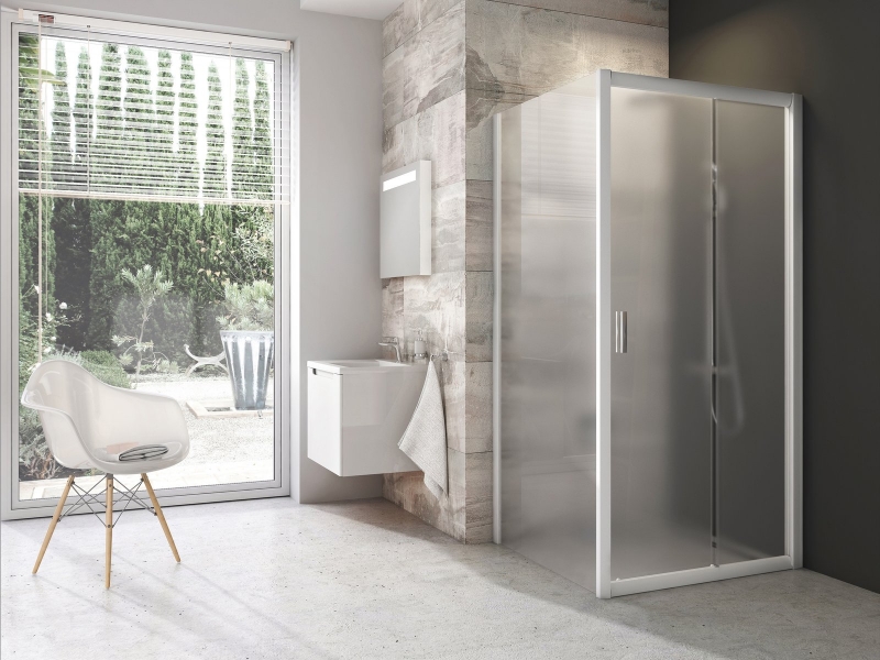 Blix sarokzuhanykabin Fehér kivitelben, Grape, edzett biztonsági üveggel és Ravak AntiCalc® vízlepergető réteggel. Tolóajtós rendszer. A termék egy zuhanyajtóból és egy fix falból áll. Forgatható termék bal és jobb oldali változat kialakításához.