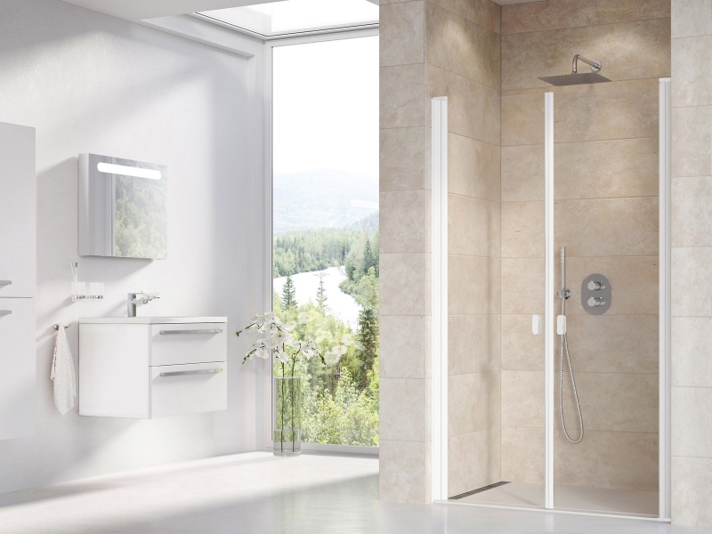 Kétszárnyú Chrome lengőajtó matt fehér kivitelben, átlátszó biztonsági üveggel, Ravak AntiCalc® vízlepergető réteggel. Nyílóajtós rendszer. Forgatható termék, jobb és bal oldali kivitel is kialakítható.