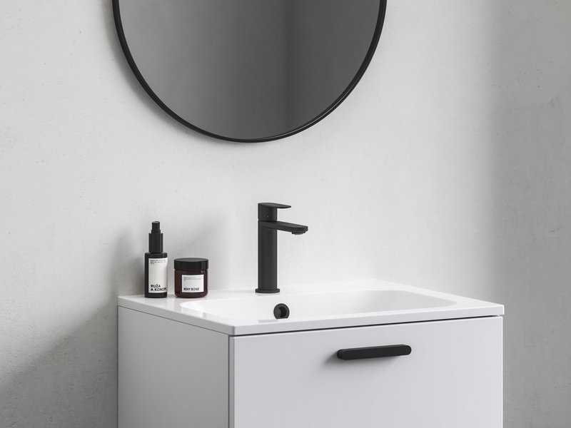 Chrome II mosdócsaptelep, leeresztő nélkül. Króm, fekete kivitelben.