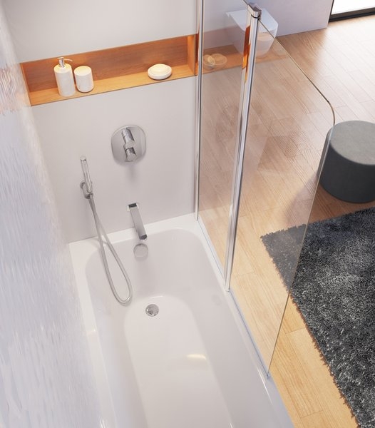 - A kádnak lapos alja és egyenes függőleges oldalfalai vannak. Ez az ideális kombináció a biztonságos zuhanyozáshoz. Csak az egyik kádparavánt kell hozzáadnia a kádhoz, hogy száraz maradjon a burkolat a fürdőszobában.