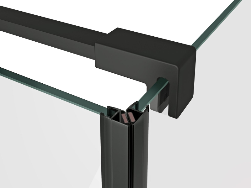 Cool! sarokzuhanykabin fekete kerettel, átlátszó biztonsági üveggel és Ravak AntiCalc® vízlepergető réteggel. Zsanéros nyíló rendszer. A termék egy zuhanyajtóból és egy fix falból áll. Forgatható termék bal és jobb oldali kivitelben.