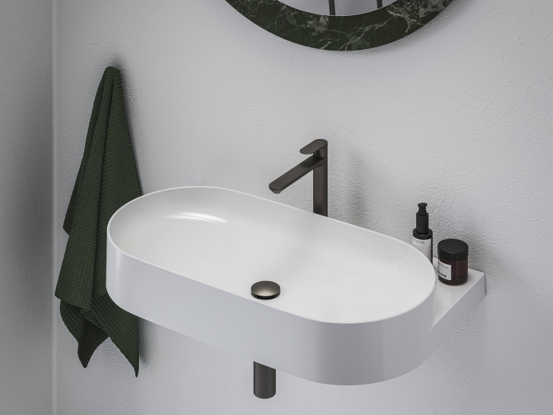 Eleganta álló mosdócsaptelep, leeresztő nélkül. Beépített perlátor EcoFlow funkcióval. BeCool funkció, amely csökkenti a vízfogyasztást.
