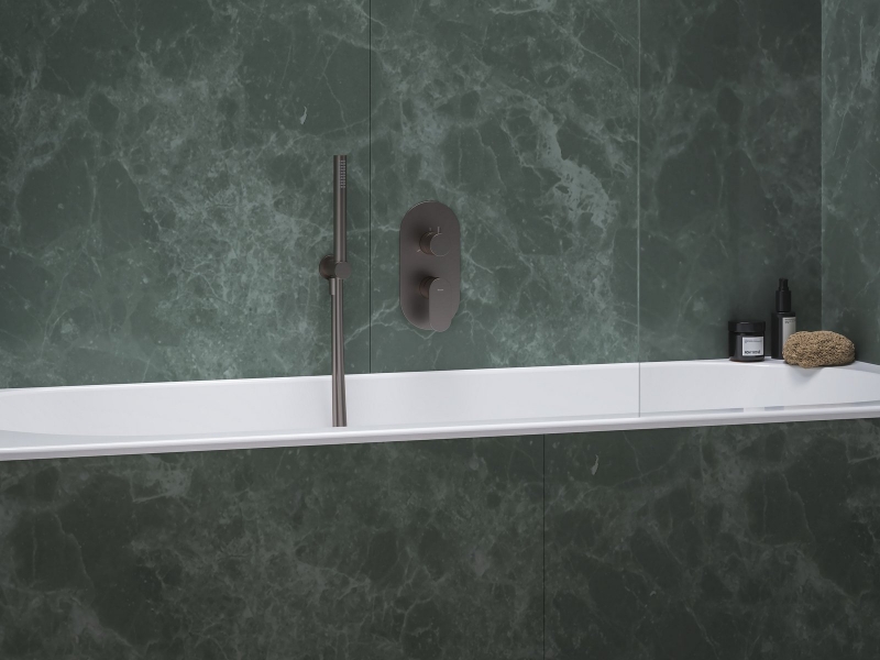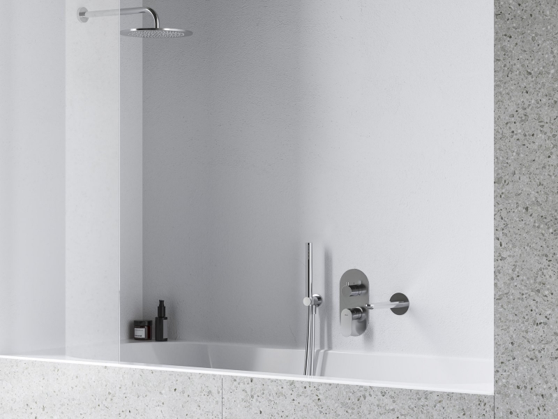 Eleganta falba süllyesztett 3-utas csaptelep, R-boxhoz. Többféle kivitelben.