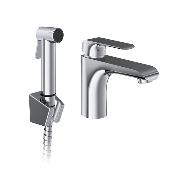 Flat álló mosdócsapteleo bidézuhannyal, leeresztő nélkül. Króm, matt fekete kivitelben.