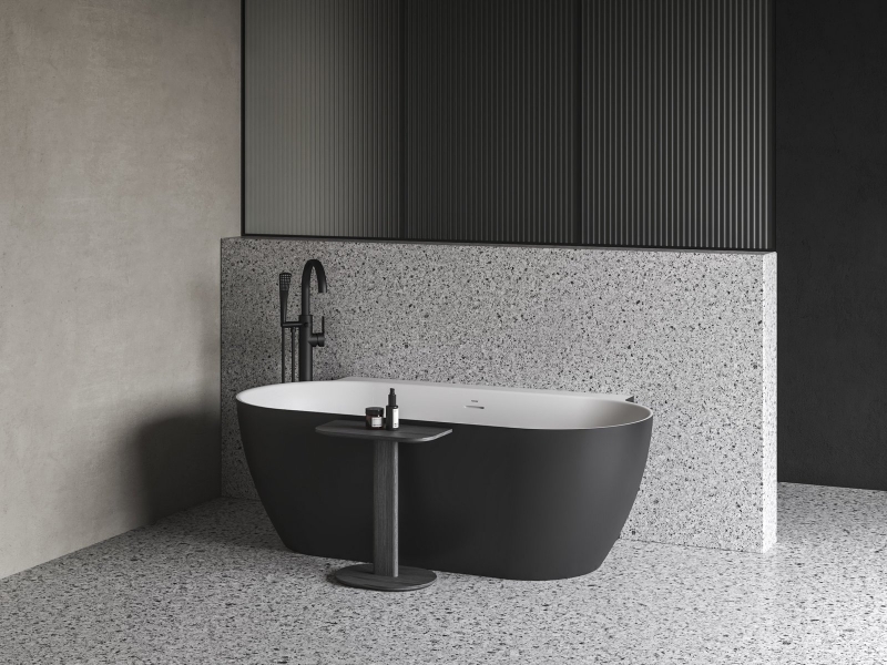 A Freedom Wall II Tec kádat nem lehetséges kiegészíteni kádparavánnal. A tartóláb és az integrált kád túl- és lefolyó a termék tartozéka.