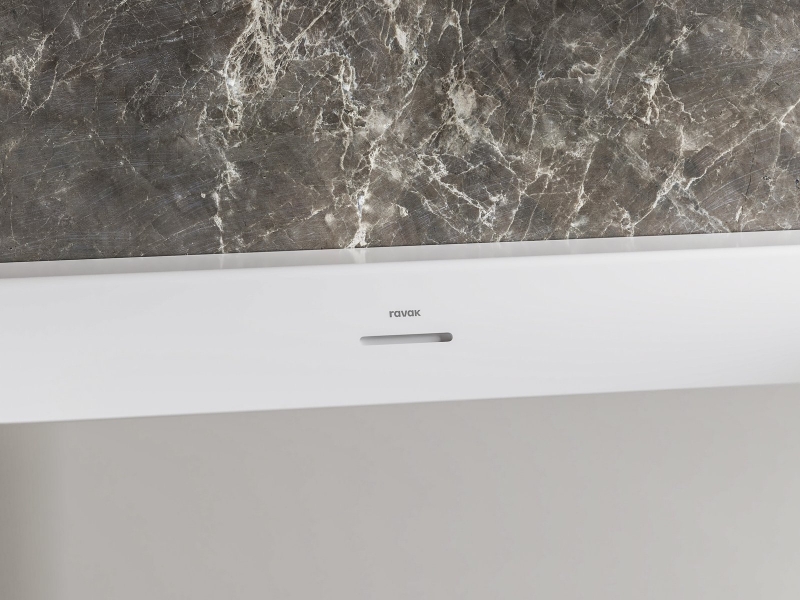 A Freedom Wall II Tec kádat nem lehetséges kiegészíteni kádparavánnal. A tartóláb és az integrált kád túl- és lefolyó a termék tartozéka.