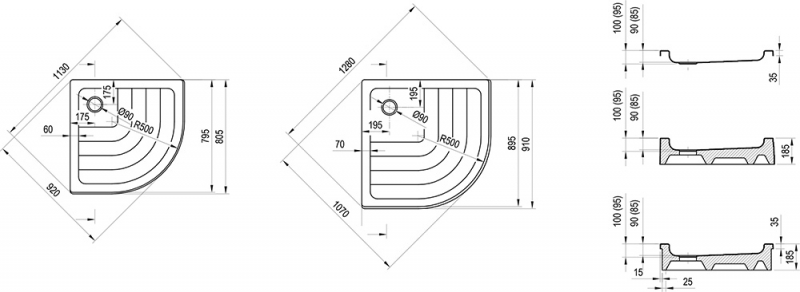 A Ronda tálca alkalmas a SKCP4, BLCP4, BLSCP4, PSKK3, NSKK3, CSKK4, SMSKK4 zuhanykabinokhoz.