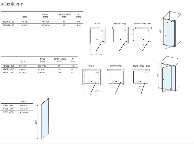 A termék egy zuhanyajtóból (NDOP2 100) és egy fix oldalfalból (NPSS 80) áll. A termék 180°-os elforgatásával bal vagy jobb oldali ajtónyitást alakíthatunk ki. A Ravak Aneta, Angela, Perseus, Perseus Pro, Perseus Pro Flat, Perseus Pro Chrome, Perseus Pro 10°, Gigant Pro, Gigant Pro Flat, Gigant Pro Chrome, Gigant Pro 10° zuhanytálcákra telepíthető vagy zuhanyfolyókával, padlóösszefolyóval közvetlenül a padlóra ültethető. Két NPSS fix fal kombinációjával „U” alakú zuhanykabin alakítható ki. Az NNPS toldóprofil használatával a termékeket 20 mm-rel bővíthetjük, így tökéletesen alkalmazkodnak a szerkezeti egyenetlenségekhez, akár mindkét oldalon 4 cm-ig.