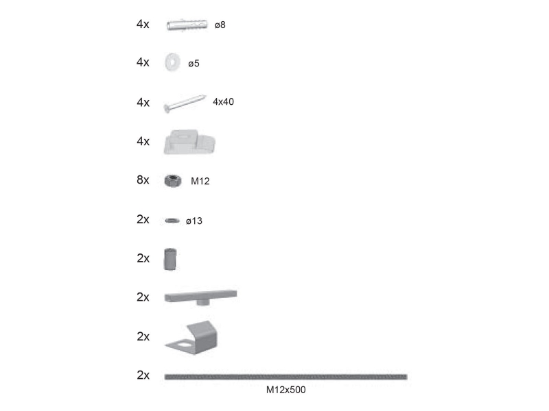 Készlet az előlap akril borításának rögzítéséhez a téglalap alakú kádakhoz.