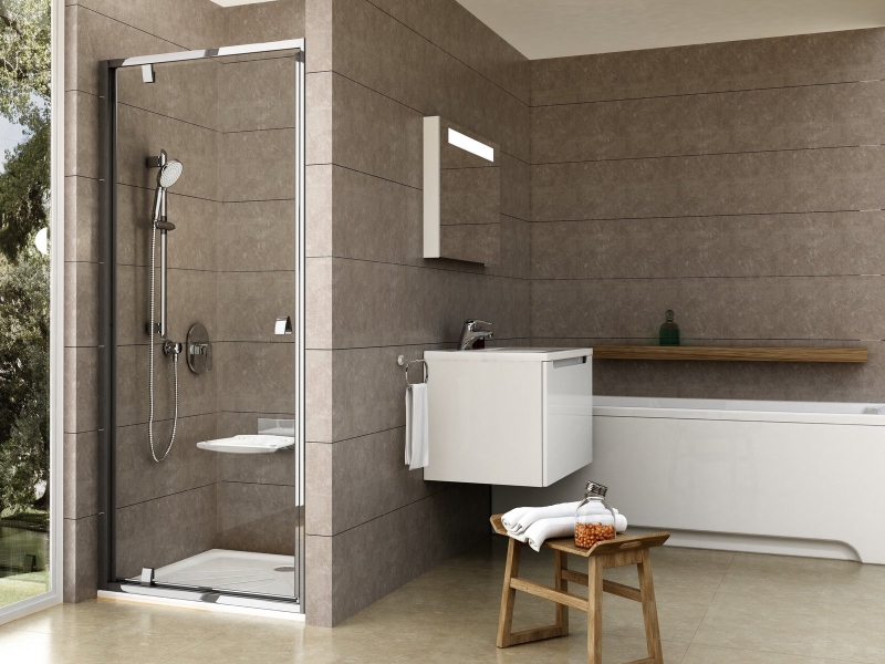 Egyrészes, forgózsanéros PIVOT nyílóajtó. A termék 180°-os elforgatásával balos vagy jobbos ajtónyitás alakítható ki. A fürdőszoba burkolt sarkába (falba épített fülkébe vagy a PPS fix falakkal kombinálva) a Ravak Aneta, Angela, Perseus, Perseus Pro, Perseus Pro Flat, Perseus Pro Chrome, Perseus Pro 10°, Gigant Pro, Gigant Pro Flat, Gigant Pro Chrome, Gigant Pro 10° zuhanytálcákra telepíthető vagy zuhanyfolyókával, padlóösszefolyóval közvetlenül a padlóra ültethető. Két PPS fix fal kombinációjával „U” alakú zuhanyzó hozható létre. A PNPS toldóprofil használatával a termékek 20 mm-rel bővíthetők, így tökéletesen alkalmazkodnak a szerkezeti egyenetlenségekhez, akár mindkét oldalon 4 cm-ig .