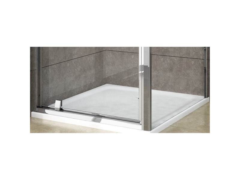 Három oldalú zuhanykabin, krómhatású kerettel, krómozott fogantyúkkal és zsanérokkal. Átlátszó, edzett biztonsági üvegből készült, Ravak AntiCalc® vízlepergető réteggel ellátva. Pivot, forgózsanéros nyílórendszer. A termék zuhanyajtóból és két fix falból áll. Forgatható termék bal és jobb oldali kivitel kialakításához.