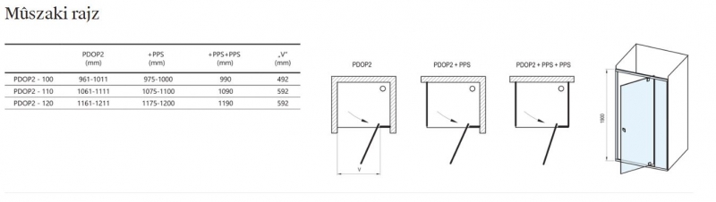 Háromfalú, U - alakú zuhanykabin, mely három különálló termékből, egy zuhanyajtóból (PDOP2 100) és két fix üvegfalból (PPS 80) áll. A termék 180°-os elforgatásával balos vagy jobbos változatot alakíthatunk ki.A fürdőszoba burkolt sarkába, a Ravak Perseus Pro, Perseus Pro Flat, Perseus Pro Chrome zuhanytálcákra telepíthető vagy zuhanyfolyókával, padlóösszefolyóval közvetlenül a padlóra ültethető. A PNPS toldóprofil használatával a termékek 20 mm-rel bővíthetők, így tökéletesen alkalmazkodnak a szerkezeti egyenetlenségekhez, akár mindkét oldalon 4 cm-ig .