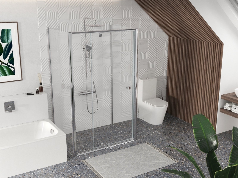 Háromfalú, U - alakú zuhanykabin, mely három különálló termékből, egy zuhanyajtóból (PDOP2 100) és két fix üvegfalból (PPS 80) áll. A termék 180°-os elforgatásával balos vagy jobbos változatot alakíthatunk ki.A fürdőszoba burkolt sarkába, a Ravak Perseus Pro, Perseus Pro Flat, Perseus Pro Chrome zuhanytálcákra telepíthető vagy zuhanyfolyókával, padlóösszefolyóval közvetlenül a padlóra ültethető. A PNPS toldóprofil használatával a termékek 20 mm-rel bővíthetők, így tökéletesen alkalmazkodnak a szerkezeti egyenetlenségekhez, akár mindkét oldalon 4 cm-ig .