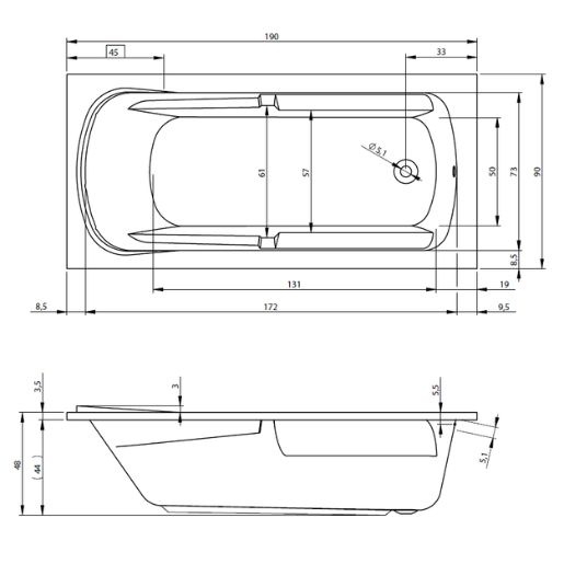 A RIHO FUTURE 190 XL akril fürdőkád 190x90 méretben egy rendkívül kényelmes és letisztult megjelenésű megoldás minden olyan fürdőszobába, ahol fontos a kényelem és a modern esztétika. Az akril fürdőkád 190x90 kiváló választás nagyobb terekbe, és ideális a hosszú, pihentető fürdésekhez.
