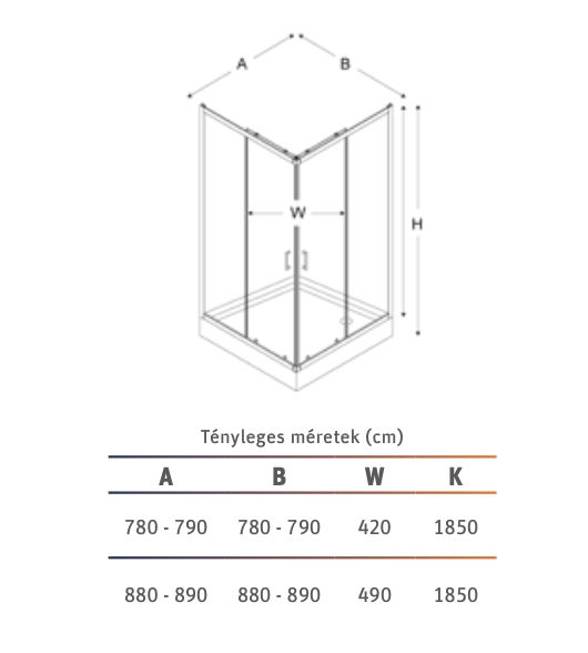 Szögletes zuhanykabin önhordó zuhanytálcával