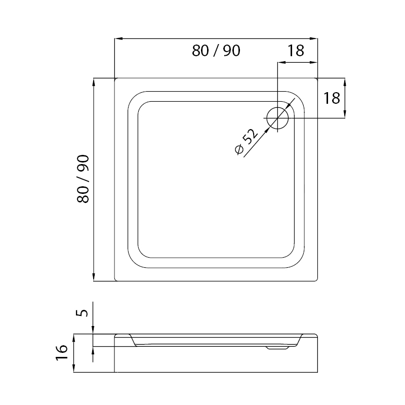 160 mm magas önhordó zuhanytálca, akril üvegszál erősítéssel